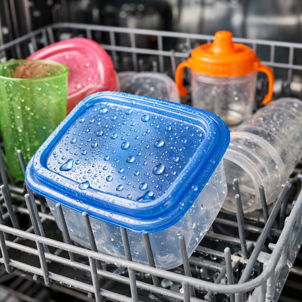 Plastics don’t hold heat the way plates do, so they rely on the dishwasher’s hot rinse, venting, and air movement to evaporate water. Consequently, if your final rinse temperature drops, or steam can’t escape, plastics will stay wet even when everything else looks “mostly dry.”